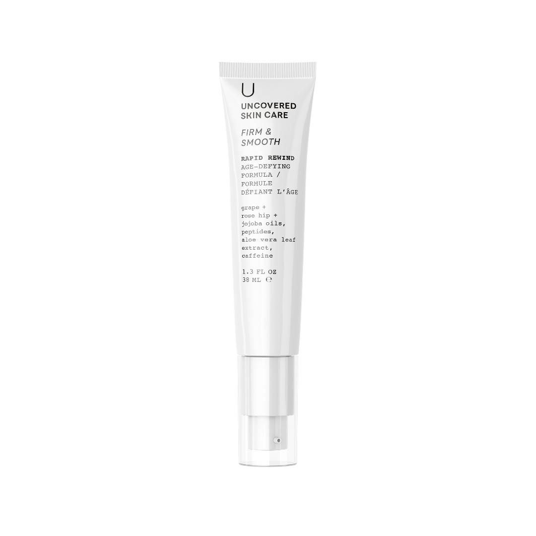 Nourish, hydrate, and improve your complexion with Rapid Rewind. This cream-to-powder formula helps skin appear smoother and firmer in minutes. Rapid Rewind is made with powerful peptides known to reduce the appearance of fine lines and wrinkles. It also contains energizing caffeine, jojoba seed oil, and aloe, ingredients known to help reduce undereye puffiness and moisturize skin. Apply directly to fine lines, wrinkles, and dark circles to see and feel the transformation. Use after moisturizer or foundation for best results.